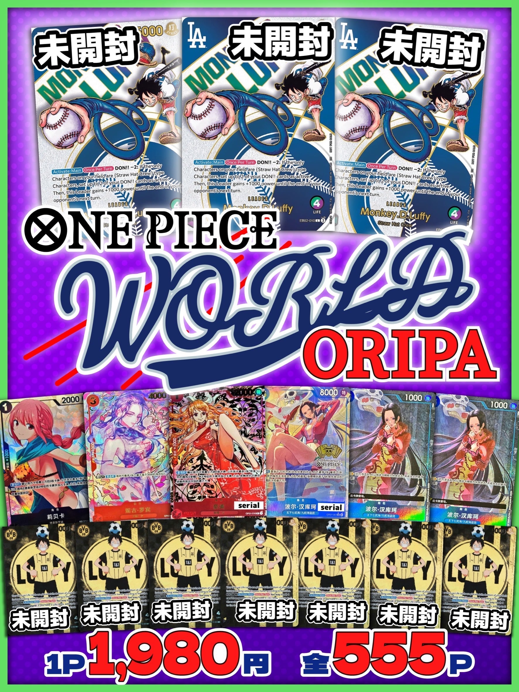 他にも中国の周年記念ハンコックやドルトムントルフィなど日本にはあまり流通していないカードがラインナップされております‼︎